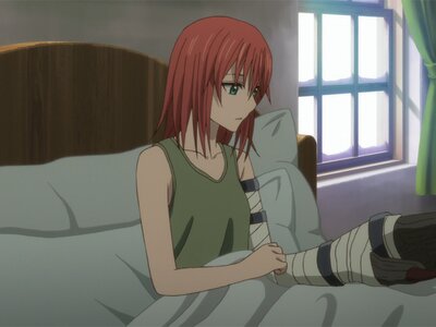 Chise möchte helfen und auch, als Elias ihr davon abrät, weil es gefährlich ist und sie mehr als ihr Leben verlieren kann, bringt auch er sie nicht davon ab. Schließlich erklärt er ihr, dass sie als Slay Vega den Drachen berühren muss, um seine Magie in sich aufzunehmen. Er selbst würde dann die überschüssige Magie in ihr neutralisieren, so, ja, so könnte es gehen. Die anderen machen sich auf, den Drachen abzulenken und Elias bringt Chise auf den Rücken des Drachen. Plötzlich gebärt sich dieser noch wilder, bricht die Decke auf und fliegt hinaus. Als sich die ungebetenen Gäste auf seinem Rücken verzweifelt an ihn klammern, spürt der Drache Chises Anwesenheit und dreht den Kopf. Alles geht ganz schnell.