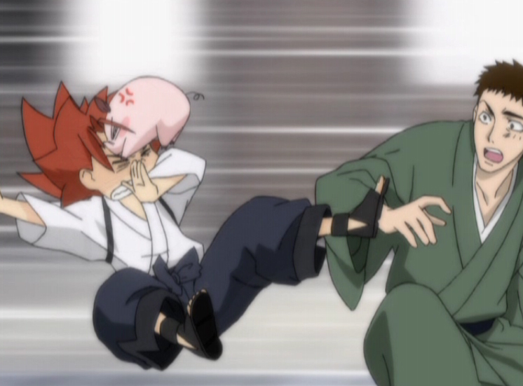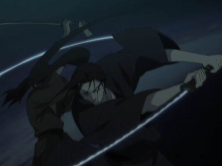 Sein Bruder Tatsunosuke spricht ihm gerade Trost zu, als plötzlich ein Schweinchen Tetsunosuke anspringt, wodurch er mit einem „platsch" im Bach landet. Verdutzt blickt er sich um, als ihm eine Hand gereicht wird, die er dankend annimmt. Der Fremde, der anscheinend ein kleines Schwein als Haustier hält, ist ein Samurai namens Okita Soji und zugleich Leiter des ersten Korps bei den Shinsengumi.