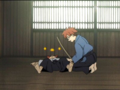 Ganz andere Probleme hat währenddessen Tetsunosuke. Seine Aufgaben bei der Shinsengumi sind bei weitem nicht das, was er sich erhofft und erwartet hätte. Statt trainieren heißt es Schweine füttern und Wäsche waschen. Und wenn er einmal dreist genug ist, um doch mit den anderen zu trainieren, bekommt er selbstverständlich Ärger. Etwas, dass ihm aber mit einem Mal vollkommen egal ist, bietet sich ihm doch plötzlich die Gelegenheit, nicht nur Soji Okita erneut in Aktion zu sehen, sondern auch den ihm ebenbürtigen, wenn nicht sogar überlegenen, Hajime Saito kennen zu lernen.