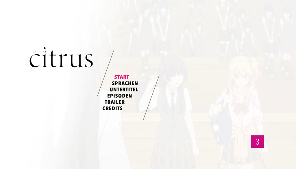 Bei Volume drei sind auf der Hülle Yuzu und Matsuri zu sehen. Hinten klebt das übliche Werbeblatt mit Screenshots und Informationen zum Anime und dem Blu-ray-Medium.