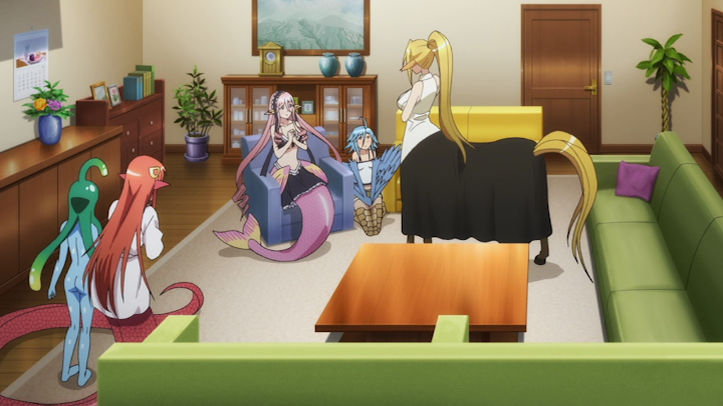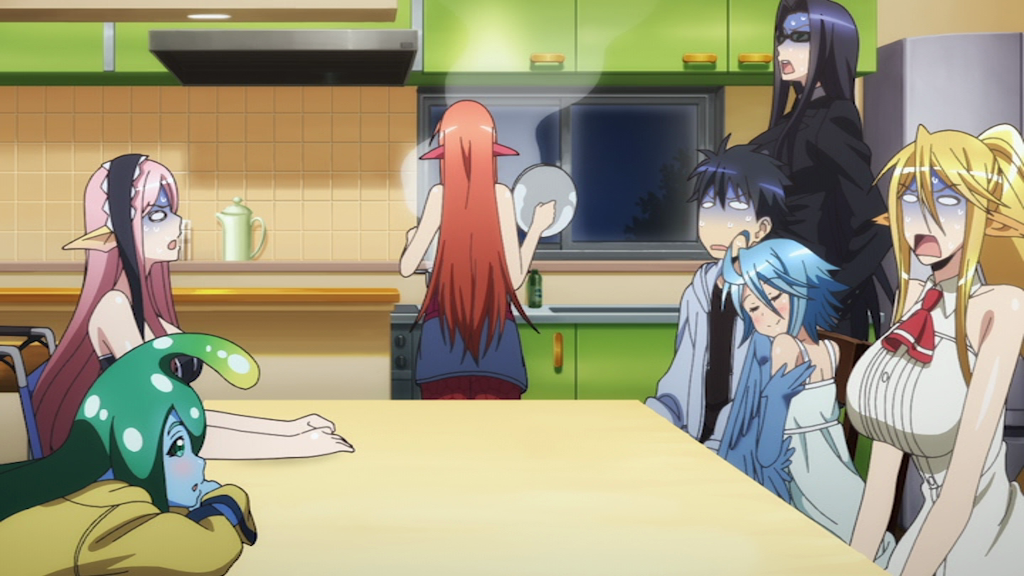 Aus irgendeinem Grund scheint sein Haus jedoch ein Monstermädchen-Magnet zu sein. Chaos bricht aus, als im Suppentopf ein Schleim gefunden wird, eine von Menschen nicht anerkannte Spezies Monster, die es sich zur Gewohnheit gemacht hat, andere nachzumachen. Papi nennt das Schleimwesen liebevoll Sue und es stellt sich schnell heraus, dass Sue von sehr kindlichem und fröhlichem Charakter ist und nicht darauf aus, jemandem Schaden zuzufügen. Als Schleim muss sie allerdings so oft wie möglich Wasser tanken und dazu lutscht sie auch mal gerne an Nachbars Haut herum. Dass die Monster und Kimihito das alles andere als lustig finden – obwohl es sie doch sehr anturnt – versteht das Mädchen nicht wirklich. Und die überarbeitete Frau Smith sieht natürlich liebend gern über alles hinweg. Schlimmer noch, als Kimihito und Monsterhaushalt überlegen, wie sie mit Sue weiter umgehen sollen, melden sich plötzlich Bauarbeiter der Regierung im Haus und bauen dieses komplett um. Jetzt hat Kimihito auch einen Pool im Anwesen. Der Grund: Frau Smith hat noch einen weiteren Gast für den perfekten Gastgeber. Neben allen anderen Monstern soll fortan auch Melu die Meerjungfrau bei Kimihito einziehen.