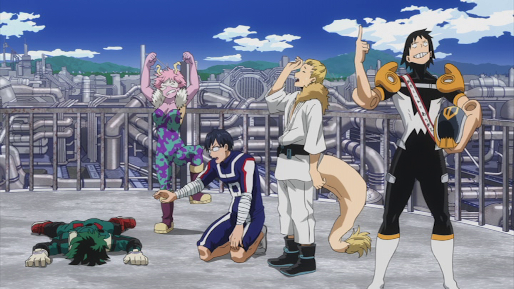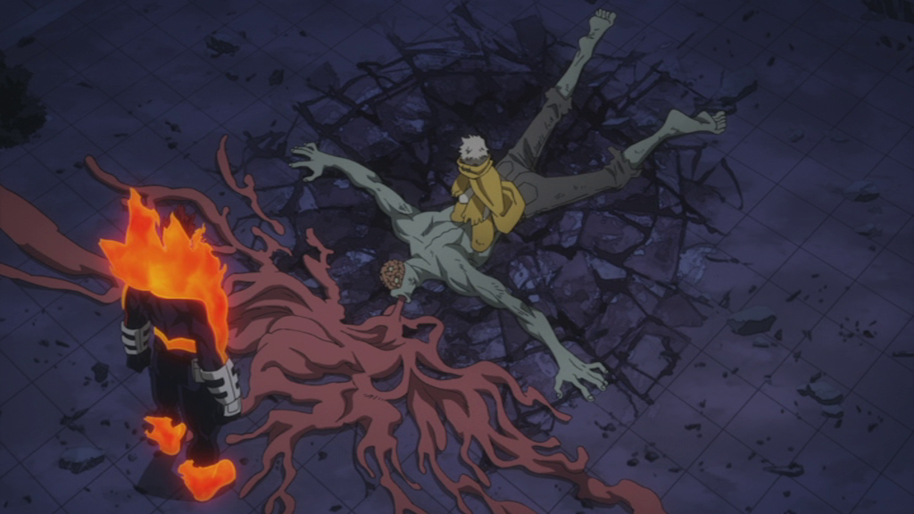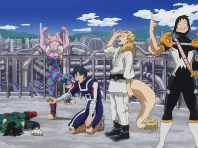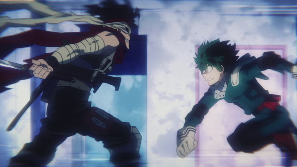 Währenddessen ist Izuku mit Gran Torino unterwegs, All Mights früherem Mentor, bei dem er sein Praktikum ablegt. Da die beiden mit dem Shinkansen durch Hosu fahren, kriegen sie den Angriff sofort mit. Ganz der Freund, macht sich Izuku sofort Sorgen um Tenya und folgt Gran Torino ins Chaos, um den Helden zu helfen. Auch Endeavor und Shoto Todoroki sind auf Patrouille durch Hosu und beginnen, den Kampf gegen Shigarakis Nomus aufzunehmen.