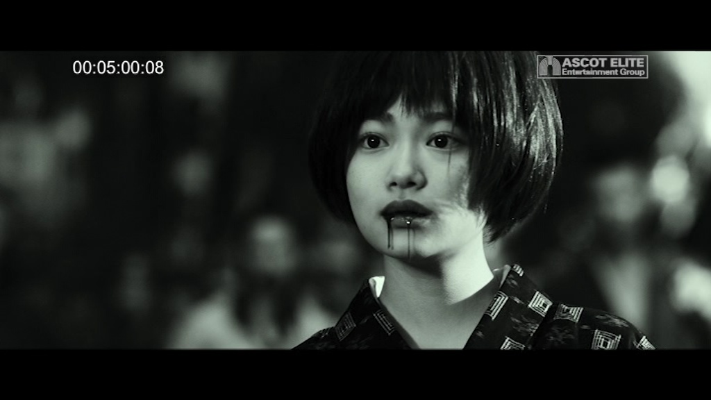 Zunächst beginnt der Film schwarz-weiß und demonstriert so die Vergangenheit und die Anfänge der Geschichte um den Samurai Manji, bevor er mit dem Titel in die Farbversion übergeht. Ein nettes Stilmittel.