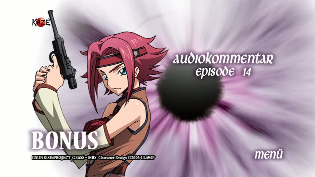 Extras in Hülle und Fülle, jedenfalls mehr oder weniger. Man darf sich über zwei Episoden mit Audiokommentaren freuen, in denen von den Synchronsprechern Jun Fukushima, Yukana, Fumiko Orikawa der Figuren Lelouch, C.C. und Shirleys, sowie von Yuriko Chiba (Main Animatorin), Eiji Nakata (Mechadesigner), Kazuya Murata (Co-Direktor), Goro Taniguchi (Regisseur) und Animationschef Seiichi Nakatani kommentiert wurde. Außerdem liegt ein enorm umfangreiches, 48 Seiten starkem Booktlet bei. Hier gibt es alles, von Charakterbeschreibungen über Erklärungen zu Knightmare Frames und Waffen, Beziehungstabellen, Episodenlisten mit Kommentaren, witzigen Lehrstunden mit den Charakteren, um die Lage von Japan zu verstehen bis hin zu „Fukuyamas Tage, die er in der Haut Lelouchs verbrachte“, Tagebuch der Haushälterin, die sich fragt, ob Lelouch die Frauenkleider aus seinem Zimmer selbst trägt und Interviews mit folgenden Personen: Motoi Izawa (Tonregie), Seji Morita (Schnitt), Kotaro Nakagawa und Hitomi Kuroishi (Musik), Yoshitaka Kawaguchi (Produzent) und Yoshinori Hishinuma (Art Direktor). Alles ist mit vielen Bildern gespickt und schön gestaltet.