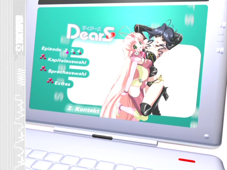Auf der DVD selbst finden wir: textless Opening, eine Galerie (wird als mit dem Opening unterlegter Clip abgespielt), das Opening und Ending in ihrer japanischen Version (wohlgemerkt, hier sind lediglich die Credits eben in Japanisch), die deutschen Credits sowie Hinweise auf die Internetseite von Tokyopop und den Manga zu DearS. In diesem Menü hört man ebenfalls das Ending.