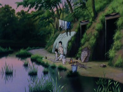 Es kommt wie es kommen muss: Seita und Setsuko ziehen bei ihrer Tante aus, wo es in der letzten Zeit immer wieder zu Streitereien um die Nahrungsmittel gekommen ist. Am Flussufer, wo die Glühwürmchen nachts tanzen, sind zwei kleine Höhlen, in denen die beiden Unterschlupf bzw. ein neues Zuhause finden. Anfangs reicht ihnen das Geld, welches ihre Mutter hinterlassen hat, aber bald ändert sich die Situation: Setsuko leidet an Unterernährung und Seita geht infolgedessen Stehlen, um zumindest ein wenig Essbares aufzutreiben. Leider ist es bald zu spät und beide ereilt ein trauriges Schicksal…