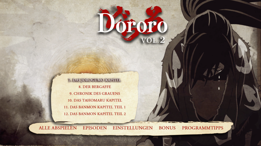 Inhaltlich hält "Dororo" wieder Kämpfe gegen Dämonen und die Konfrontation Hyakkimarus mit seiner Familie parat. In puncto Umsetzung überzeugt auch das zweite Volume von "Dororo" mit toller Bild-, Ton- und Synchro-Qualität. Ein besonderes Schmankerl sind dieses Mal die Extras (Booklet, Art Cards und Making Of), die einen informativen Einblick in die Entstehung des Anime geben.