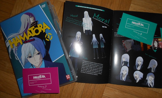 Neben dem Wendecover und dem schwarzen Booklet liegen erneut zwei Profile-Karten bei. Dieses Mal passend zum Design von Art und Moral. Außerdem sind noch ein paar Anime-Trailer auf der DVD zu finden.