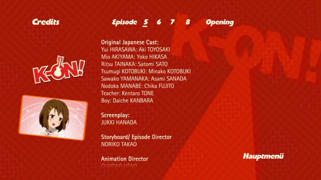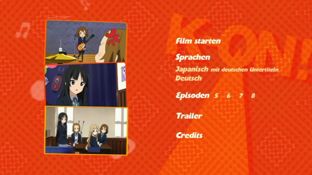 Weich, fluffig, niedlich. Das sind Begriffe, die auf „K-On!“ einfach zutreffen, wie zu wenigen Anime-Serien. Die Strichführungen und Farben sind teilweise ein wenig verwischt und wirken sehr weich, was wirklich gut zur leichten Atmosphäre des Anime passt. Auch ansonsten ist das 16:9 Bild sehr gut, es stört und rauscht nicht und da so gut wie keine plötzlichen Schnitte gemacht wurden, wirkt alles sehr fließend. Die beiden Tonspuren in Japanisch und Deutsch DD 2.0 sind ebenfalls sehr schön anzuhören und fehlerfrei. Über die Synchronsprecher scheiden sich sicher die Meinungen, an und für sich sind sie eigentlich recht gut gewählt und machen ihre Arbeit auch gut, allerdings unterscheiden sie sich doch entscheidend von den japanischen Sprechern, die vielen bereits im Ohr hängen werden. Untertitel lassen sich in deutscher Sprache anwählen. Diese sind, altbekannt und längst bewährt, in gelber Farbe mit schwarzem Rand und lassen sich somit überall lesen. Wenn man bei den Songs die Untertitel aus hat, wird der japanische Text eingeblendet, wenn man sie eingeschaltet hat, bekommt man eine deutsche Übersetzung. Sehr zu empfehlen. Auf Dubtitel wurde verzichtet und Rechtschreibfehler sind auch keine vorhanden. So wünscht man sich das.