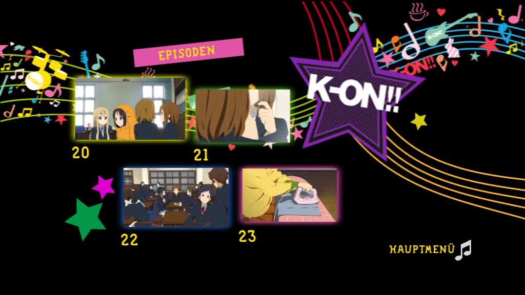 Man bleibt sich treu. Die fünfte Volume sieht von hinten aus, wie alle vorherigen auch schon und gibt so direkt das vertraute „K-On!!“ Gefühl wieder. Auf dem Cover sieht man dieses Mal die Mädchen vor und auf der Bühne stehen, allerdings wirken sie nun etwas ruhiger. Man könnte also sagen, die DVD-Hülle passt sich der Situation an. Der Rückentext geht ein wenig auf die verschiedenen Episoden ein, ohne dabei tatsächlich etwas vorwegzunehmen und ist gut geschrieben. Außerdem finden sich auf der Rückseite drei Screenshots und die rechtlichen und technischen Details.