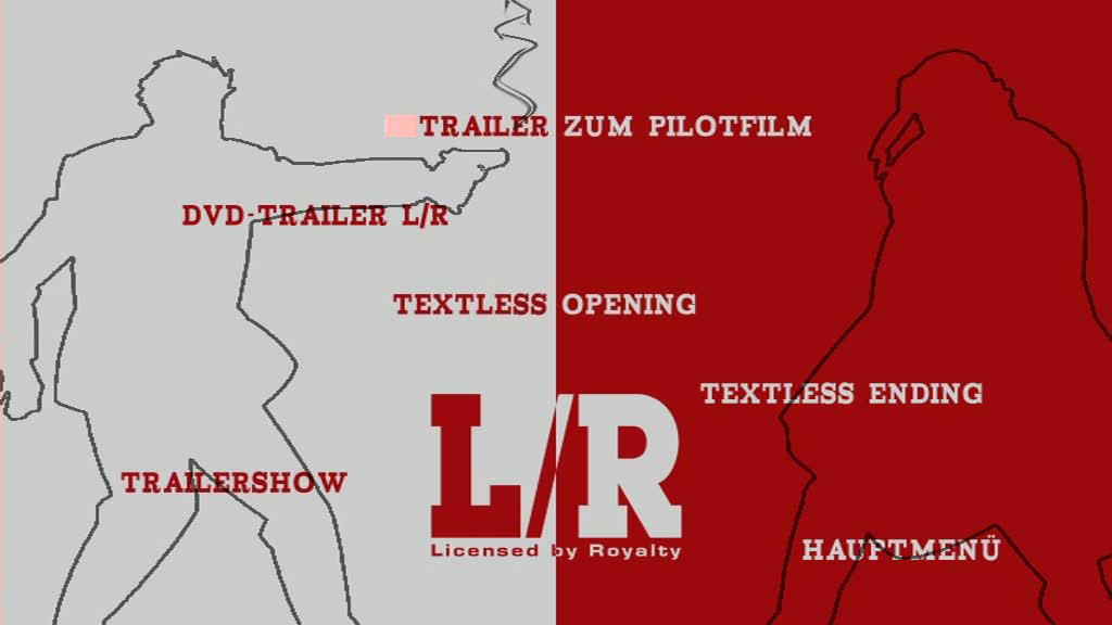 Die DVD kommt in einer gewöhnlichen Amaray-Hülle ins Haus. Auf dem Cover findet man erstmal stark hervorgehoben die beiden Hauptcharakter Jack und Row. Im Hintergrund sieht man kleine actionreiche Szenen. Unten baut sich der Titel L/R auf, der links und rechts von jeweils einem der zwei Schatten der Hauptcharakter geziert wird.