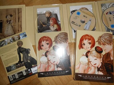 Die Gesamtausgabe kommt in einem Pappschuber mit Claus, Lavie und Al auf dem Cover. Auf dem Rücken der Box sind Illustrationen von Range Murata abgebildet, die noch größer auf dem aufklappbaren Einschub mit den sechs DVDs zu sehen sind.