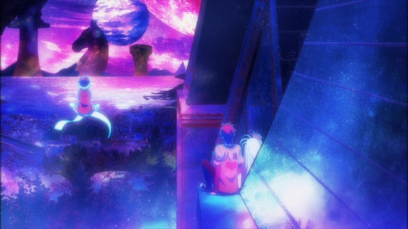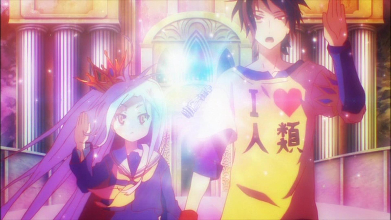 Der zunächst eher etwas traurige Start mit Bezug auf die normale Realität wechselt schnell zu einer fantastischen Welt mit Spaß und spannendem Spiel. Denn kaum in der Spielwelt angekommen, gibt es viel zu sehen und neu zu lernen. Sehr interessant sind insbesondere die zehn Gebote. Aber auch die Idee mit den Rassen, die an ein RPG erinnert, weckt Neugier. Allerdings ist die Menschheit zu befreien, wie es Helden in einer fremden Welt tun, zwar ein Ziel von Sora und Shiro, dennoch geht es ihnen dabei nicht um Heldentum, sondern mehr um die Spiele. Denn ihre Ehre verlangt, kein Spiel zu verlieren. Doch die Geschichte ist nicht nur für Zuschauer, die gerne spielen, interessant. Besonders das männliche Publikum wird sich an den sexistischen Späßen und Gedanken, die der achtzehnjähriger Sora nun mal hat, erfreuen. Er hat nicht umsonst unzählige Sim-Dating-Spiele gezockt. Wobei ihn seine Schwester mit ihren elf Jahren mehr unterstützt als sie wohl sollte. Da fragt sich nicht nur Steph des Öfteren, was die Geschwister wohl wirklich für eine Beziehung unterhalten. Was weibliche Zuschauer dagegen nicht abschrecken sollte.