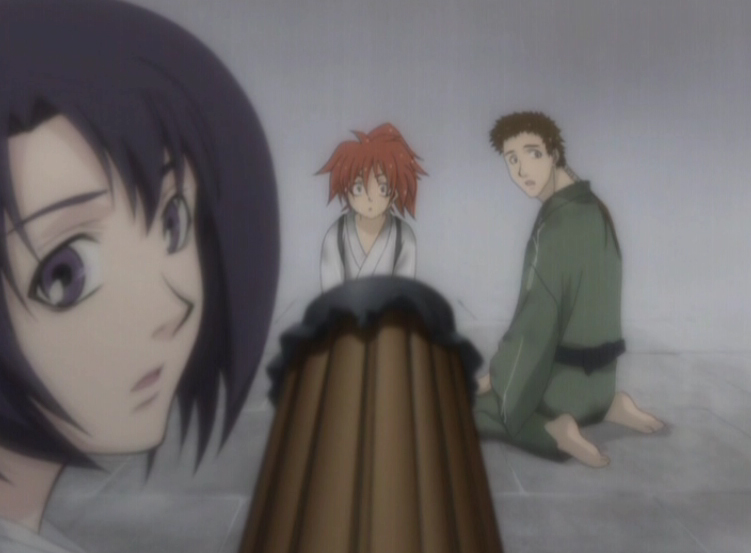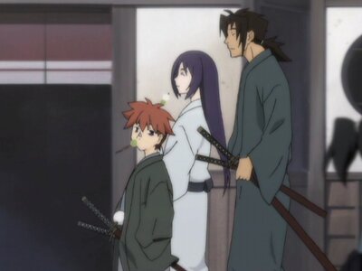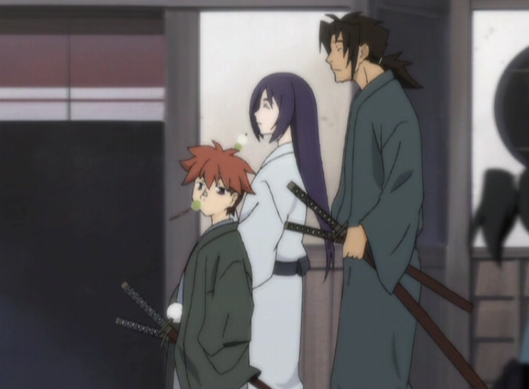Sein Bruder Tatsunosuke spricht ihm gerade Trost zu, als plötzlich ein Schweinchen Tetsunosuke anspringt, wodurch er mit einem „platsch" im Bach landet. Verdutzt blickt er sich um, als ihm eine Hand gereicht wird, die er dankend annimmt. Der Fremde, der anscheinend ein kleines Schwein als Haustier hält, ist ein Samurai namens Okita Soji und zugleich Leiter des ersten Korps bei den Shinsengumi.
