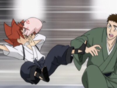 Durch seine Hilfe darf Tetsu sogar die Aufnahmeprüfung ablegen, aber diese erweist sich als äußerst schwierig: Er muss den Meister Okita besiegen, der nicht nur ein „Mehr" an Körpergröße besitzt, sondern nebenbei ein ausgezeichneter Schwertkämpfer ist. Tetsunosuke schlägt sich wacker, aber letztendlich muss er einsehen, dass er keine Chance hat.