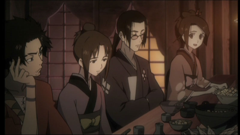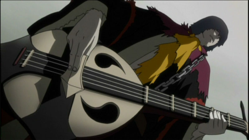 Auf durchs kalte Nass! Es regnet und Mugen, Fuu und Jin sind auf der Suche nach einer Herberge, die sie freundlich aufnimmt. Gesagt, getan; schon findet sich eine schmucke Bar, in der sie eine Goze namens Sara kennen lernen. Als blinde Wandermusikerin zieht sie umher und wird an diesem Abend von zwei äußerst brutal aussehenden Typen angepöbelt. Da kann Mugen nicht zusehen, wie einer derart attraktiven Frau zugesetzt wird und schon vertreibt er die zwei Halunken aus der Herberge.