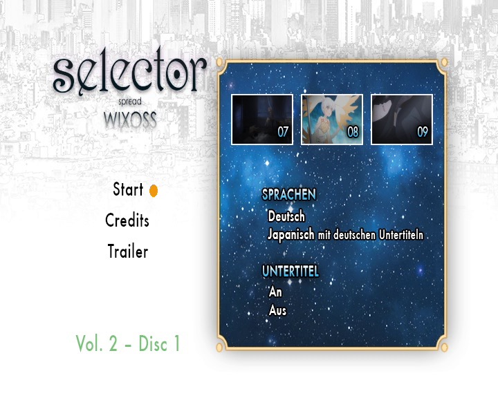Zu Volume zwei liegen abermals drei Hochglanzpostkarten mit drei verschiedenen LRIGs und auf den DVDs Trailer von Kazé Anime bei.