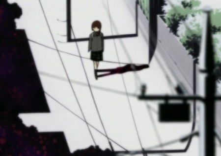 "Serial Experiments Lain" ist ein sehr düsterer Anime mit verstörenden Bildern und starken Farbkontrasten.