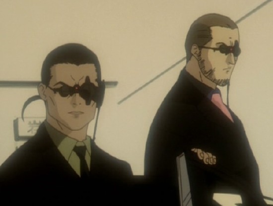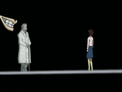 Dann wird ein Computerfreak, der nach ihnen sucht, tot aufgefunden und Lain von Männern in schwarzen Anzügen entführt und ausgefragt. Langsam stellt sich Lain die Frage, ob die reale Welt wirklich real ist und welche Rolle sie selbst in der ganzen Sache spielt...