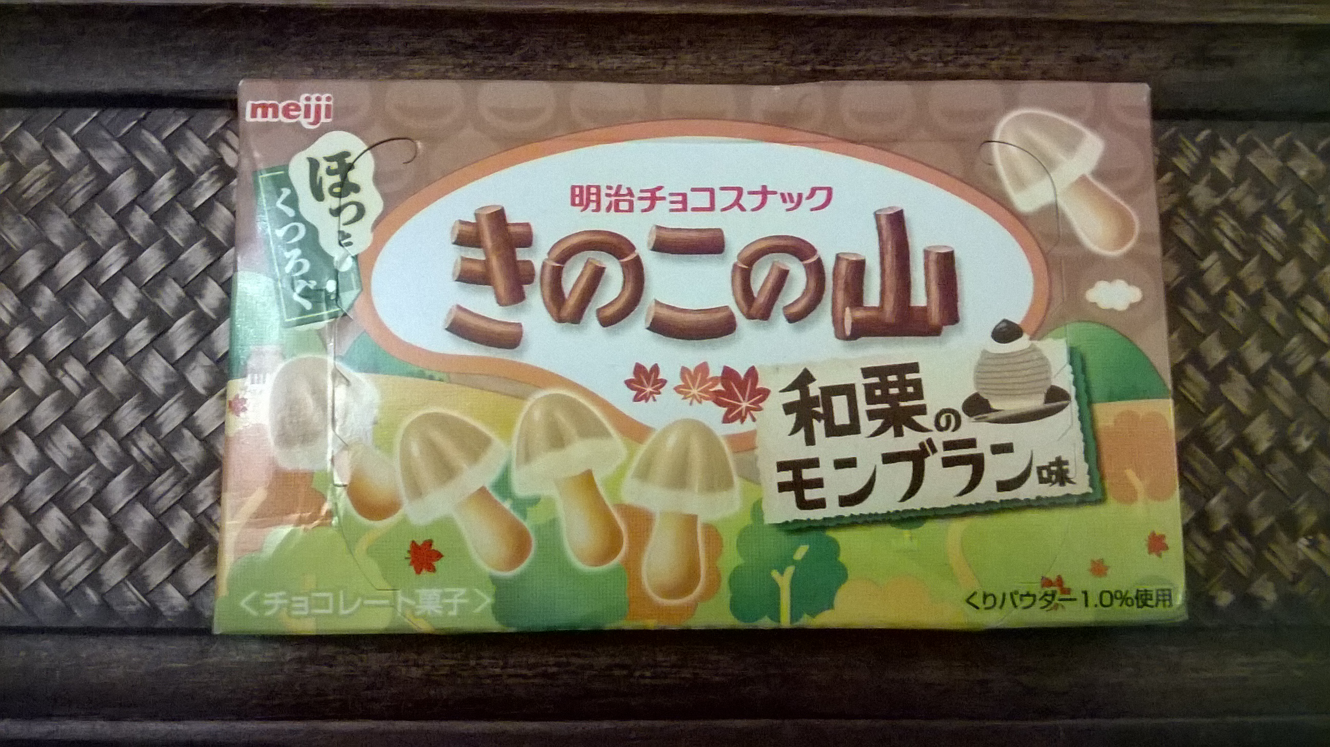 Bild links: Kinoko no Yama (Berg der Pilze) "Marone"; Bild rechts: Kinoko no Yama "Matcha Azukibohne"