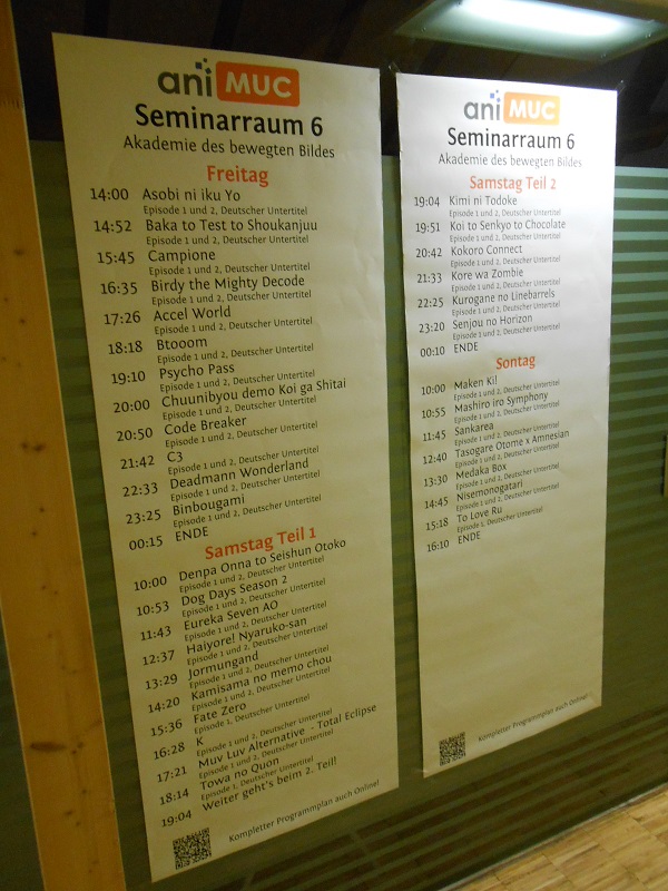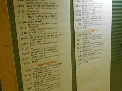 Animes dürfen auf einer Anime-Veranstaltung natürlich auch nicht fehlen. Daher wurden unter anderem „Triangle Heart“, „Madoka Magica“, „Kamikaze Kaitou Jeanne“, „Blood+“, „Shugo Chara“, „Guilty Crown“ und „Patlabor 3“ gezeigt.