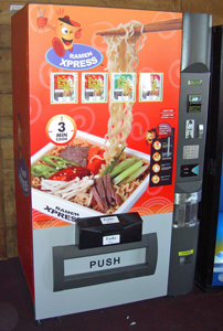 Egal ob Ramen, Udon oder Soba, alles wird warm serviert und dauert nur wenige Augenblicke, ca. dreißig Sekunden. Dazu kostet die Sache gerade mal 300 Yen (ungefähr 2,70€). Welches Restaurant in Japan dies fertig bringt? Viele mechanische Servierer: Die Essensautomaten für heiße Nudeln!
