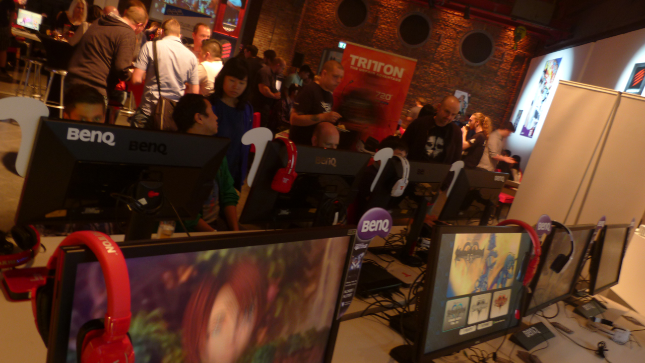 Nach all diesen tollen Ankündigungen wussten wir nicht so recht, wo uns der Kopf stand und deshalb versuchten wir, eine Pause einzulegen. Doch wie es der Zufall so wollte, war außerhalb der Fachbesucherhallen die Hölle losgebrochen. Kaum verließ man den Bereich, wurde es voll und laut – aber die Leute hatten Spaß. So ließen wir uns ein wenig vom lustigen Treiben mitziehen, bevor wir uns dem nächsten Termin hingaben. Einem Termin, in dem es um Geld und Leben ging: