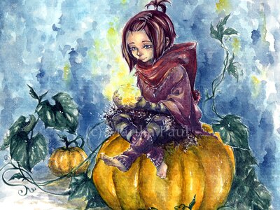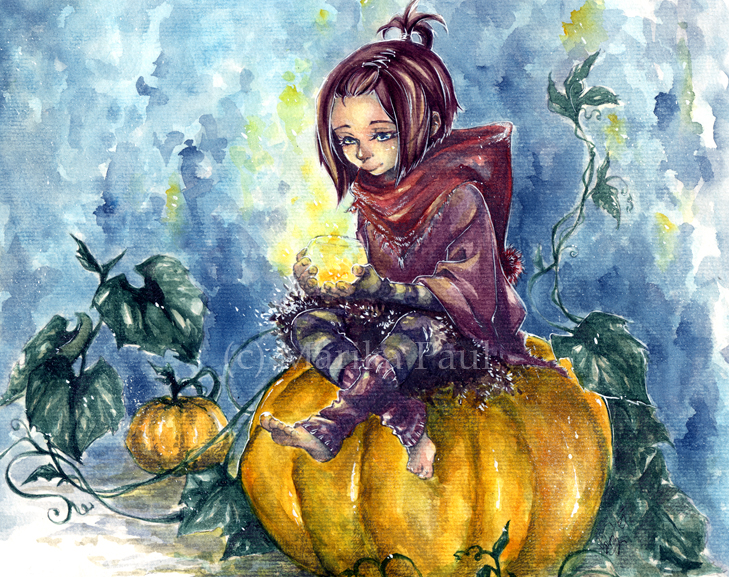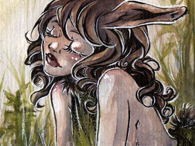 Für Illustrationen bevorzuge ich mittlerweile Aquarell und Tusche, obwohl ich früher mehr mit Copics gearbeitet habe. Aquarell mag ich so, weil ich damit sowohl eine schnelle und wunderbar leichte, als auch eine vielschichtige Koloration machen kann.