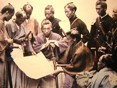 Zeitlich gesehen fand die Meiji-Restauration in den Jahren zwischen 1862 und 1869 statt, also gegen Ende der Edo- und zu Beginn der Meiji-Periode, die 1868 begonnen hatte. Innerhalb dieser relativ kurzen Zeitspanne kam es zum politischen Umbruch in Japan, aber auch zu einer völligen Neustrukturierung des bis dahin gekannten Sozialsystems. Eingeleitet wurde diese Wandlung durch die Ankunft der Schwarzen Schiffe Commodore Matthew Perrys. Nach diesem Ereignis öffnete sich Japan erstmals gegenüber anderen Ländern.