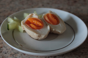 Ajitama sind gekochte Eier, die in einem Sud aus Mirin (süßer Reiswein), Sake (Reiswein) und Dashi (Fischsud) eingelegt werden. Man kann sie als Beilage, Vorspeise oder Snack essen. Eine typische Verwendungsart ist in verschiedenen Ramenarten, in denen das Ei „ schwimmt “ und sehr schmackhaft ist. Es ist leicht und schnell gemacht, allerdings müsst ihr eine Ziehzeit von mindestens einem halben Tag (etwa 6 Stunden) einrechnen.