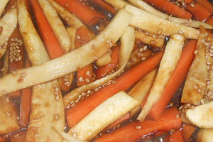 Kinpira ist kein Einzelgericht, das heißt, es wird als Zugabe gereicht.