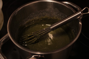 Agar ist also der Grundstoff, um überhaupt die richtige Form und Konsistenz zu erhalten. Im Gegensatz zu den gewöhnlichen Yōkan wird Matcha Yōkan mit Shiroan, also weißer Bohnenpaste, und nicht aus rotem Koshian, das, was in der Regel unter dem Übergriff „Anko“ bekannt ist, hergestellt – was aber hauptsächlich daran liegt, dass so die grüne Färbung durch den Matcha besser hervorkommt. Man kann das Shiroan aber auch mit Koshian ersetzen.