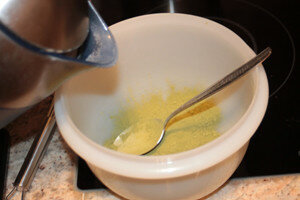 Nun noch ein paar kurze Worte zu den Zutaten: Koshian kann man bei uns in Dosen kaufen, Shiroan habe ich bisher noch nicht fertig zu kaufen gesehen. Allerdings ist davon sowieso wirklich abzuraten. Man kann es ja im Internet sehr oft lesen, fertiges Anko ist nicht mit selbstgemachtem zu vergleichen, aber man glaubt es ja immer erst, wenn man es selbst probiert. Ich habe bislang auch immer Dosenanko verwendet und werde in Zukunft darauf verzichten, denn dadurch, dass ich gezwungen war, Shiroan selbst herzustellen, weiß ich, dass es viel besser schmeckt. Wer also die Muße hat, das etwas aufwändige Rezept nachzumachen, findet hier die Anleitung. Man sollte Shiroan aber bereits im Vorraus herstellen, denn wenn das mal fertig ist, hat man sicher keine Lust mehr, noch am selben Tag die Yōkan herzustellen.
