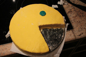Habt ihr die aufwändigen Motivtorten mit Fondant, Marzipan und Ganache schon immer bewundert? Wer sich an ein solches Projekt nicht herantraut, für den ist vielleicht die Pacman-Torte etwas: Hier werden alle Schritte nötig, die man ebenso für eine „richtige“ Fondanttorte macht, aber durch die simple Form schaffen es auch Anfänger, ein zufriedenstellendes Ergebnis zu erzielen.