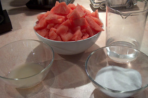 Für das Eis solltet ihr eine sehr reife Melone nehmen, schließlich ist der Geschmack von Melonen nicht sehr stark. In Japan werden Melonen, die nicht so aromatisch sind, oft mit etwas Salz gegessen, dadurch kommt der Geschmack besser zur Geltung. Das solltet ihr unbedingt mal ausprobieren! Mit Salz schmeckt es wirklich besser, macht aber lieber keins an das Eis.