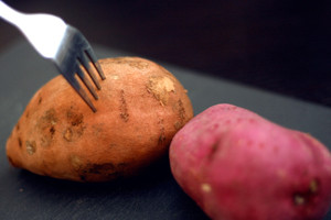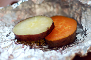 Gebackene Süßkartoffeln sind ein beliebter Snack in Japan. Besonders im Winter isst man diese süßen Kartoffeln gern. Wenn man es richtig übersetzt heißt es eigentlich „Bratkartoffel“. Hierzulange bekommt man Süßkartoffeln mit roter Schale, die als Satsuma-Imo in Japan bekannt sind. Satsuma ist eine Region in der Provinz Kagoshima. In Japan gibt es jedoch viele Arten der Süßkartoffeln, die man in vielen Supermärkten roh oder teils auch gegart kaufen kann. Sind Schale und Fleisch violett, heißt die Srte Murasaki-imo. Diese Art ist eine Spezialität von Kagoshima und Yakushima. Allerdings findet man sie auch in anderen Teilen Kyūshūs. Es gibt viele Arten, zum Beispiel auch eine mit sehr dickflüssigem Saft und orangefarbenem Fleisch, die sehr süß schmecken soll. Natürlich gibt es noch viel mehr Sorten, aber hier die Zubereitungsart der Sorte, die man auch in Deutschland kaufen kann.