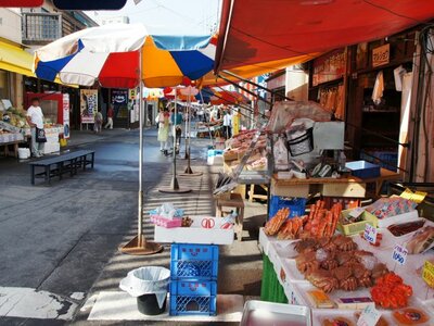 Wie für Hafenstädte üblich, gibt es auch in Hakodate einen Vormittagsmarkt. Dieser befindet sich in der Nähe der JR Hakodate Station und öffnet im Sommer um 5:00 Uhr in der Früh, im Winter eine Stunde später. Angeboten werden lokale Spezialitäten wie Krabben, Lachseier und Seeigel, die man auch in den vielen umliegenden Restaurants zum Frühstück probieren kann. Ein Erlebnis für Einheimische wie auch Touristen!