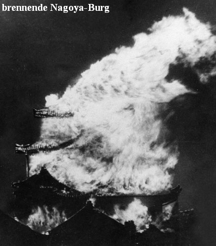 Nagoya gehört zu den japanischen Städten, die durch den Zweiten Weltkrieg stark in Mitleidenschaft gezogen wurden. Die Mitsubishi Flugzeugwerft, das Matsuhigecho Öllagerhaus, die Kriegsrüstungsanlage und die Kasernen der Nagoya-Burg wurden im April 1942 durch die USA attackiert. Im Dezember 1944 sowie im Januar, März, April und Mai 1945 folgten weitere, folgenschwere Angriffe, welchen letzten Endes sogar die Nagoya-Burg zum Opfer fiel. Grund für die zahlreichen Angriffe war die Tatsache, dass Nagoya damals das Zentrum der japanischen Flugzeugindustrie war: Vierzig bis fünfzig Prozent aller Produktionen des Landes an Kampfflugzeugen fanden in Nagoya statt.