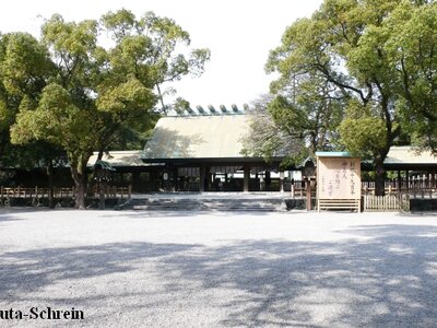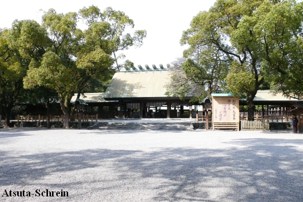Ebenfalls zerstört und wieder aufgebaut wurde der Atsuta-Schrein. Man nennt ihn auch „Atsuta-Sama“ („ehrwürdiger Atsuta“) oder einfach „Miya“ („der Schrein“). Er gilt als einer der wichtigsten Schreine des Landes und ist der Sonnengöttin Amaterasu gewidmet. Zudem beherbergt er das heilige Schwert Kusanagi, welches der Öffentlichkeit jedoch nicht zur Schau gestellt wird.