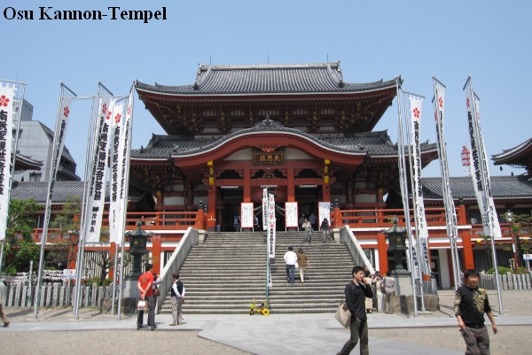 Ein ebenfalls erwähnenswertes, religiöses Gebäude ist der Osu Kannon-Tempel. Dieser heißt eigentlich Kitanosan Shinpuku-ji Hosho-in und stammt ursprünglich aus der Stadt Hashima in der Gifu-Präfektur. Dort war er mehrfachen Überschwemmungen ausgesetzt, weshalb er 1612 nach Nagoya umzog. Gewidmet ist der Tempel Kannon, der Göttin der Gnade.