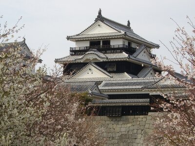 Auch die Präfektur Ehime hat solch eine Burg vorzuweisen: Zwischen 1602 und 1628 wurde hier auf dem Berg Katsu in Matsuyama die Matsuyama-Burg errichtet. 1784 erlitt der Burgturm Schäden durch Blitzschlag, weshalb er zwischen 1820 und 1854 erneuert wurde. Zu der Burganlage gelangt man heute bequem via Seilbahn.