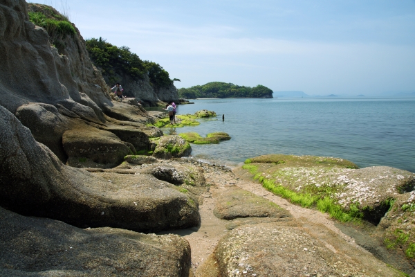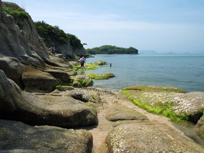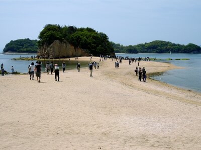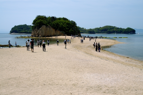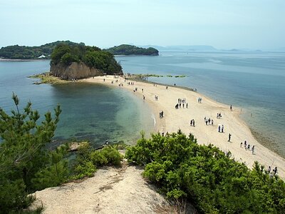 An der südwestlichen Küste gelegen verläuft die sogenannte „Angel Road“, die „Engelstraße“. Hierbei handelt es sich um eine Sandbank, welche drei kleine Inseln mit Shodoshima verbindet, die man zwei Mal am Tag, wenn Ebbe herrscht, betreten kann. Es wird gesagt, dass, sollten Pärchen diesen Weg Hand in Hand beschreiten, gemeinsames Glück auf sie wartet.