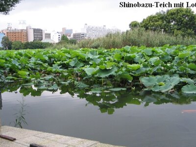 Beim Shinobazu-Teich handelt es sich um ein natürliches Gewässer, welches schon mehrere Male modernisiert und im Jahre 1967, aufgrund fehlerhafter Bauarbeiten an einer Bahnlinie, fast trocken gelegt wurde.