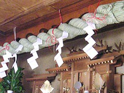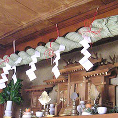 Neben all den Ehrerweisungen der Götter bei Festen, Hochzeiten oder Geburten, gibt es auch einen Opferritus, um den Zorn der Gottheiten zu bändigen. Dazu gehören unter anderem die Darbringung von Speisen oder das einfache Überbringen eines Kirschbaumzweiges, verbunden mit rituellen Gebeten. Ein zentraler Aufbewahrungsort für Sutras, Amulette und Totenstäbe („ihai“) ist der Hausaltar.
