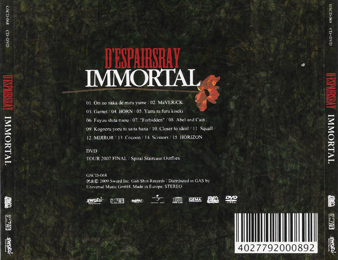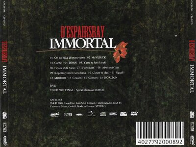 D'espairs Ray setzen ihren Schwerpunkt nicht länger auf harte Nu-Metal-Riffs sondern bewegen sich in Richtung Industrial bis hin zu hörenswertem Pop-Rock. So bilden auch „Cocoon“ und „Scissors“, beides B-Sides aus dem Jahre 2008, eine willkommene Mischung aus harten Tönen und leichtem Rock. Mit dem lockeren Klang von „Horizon“, der letzten Veröffentlichung des Quartetts, die im Dezember 2008 ihren Weg in die Plattenläden fand, bevor D'espairs Ray zu einem Major-Label wechselten, endet „Immortal“ nach über einer Stunde Spielzeit.