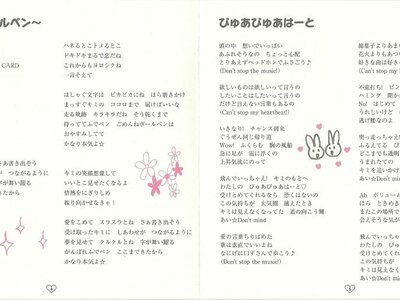 So entstand dann der Inhalt dieser CD. Hier finden sich auch Lieder wie „Fuwa Fuwa Time“, „Curry Nochi Rice“, „Watashi no Koi wa Hotch Kiss“ und noch einige mehr der sehr beliebten Songs, die auf der ersten CD nicht vorhanden waren.