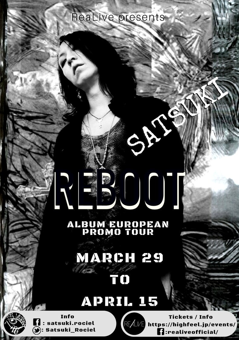 Auch SATSUKI wird dieses Jahr erneut nach Europa kommen. Auf dieser kurzen Tour, welche bisher vom 29.03. bis 15.04.2018 geplant ist, wird er sein neues Album "REBOOT" vorstellen. Genaue Termine und Locations stehen noch nicht fest. Tickets werden aber wie gewohnt über den Veranstalter HIGHFeeL zur Verfügung stehen.